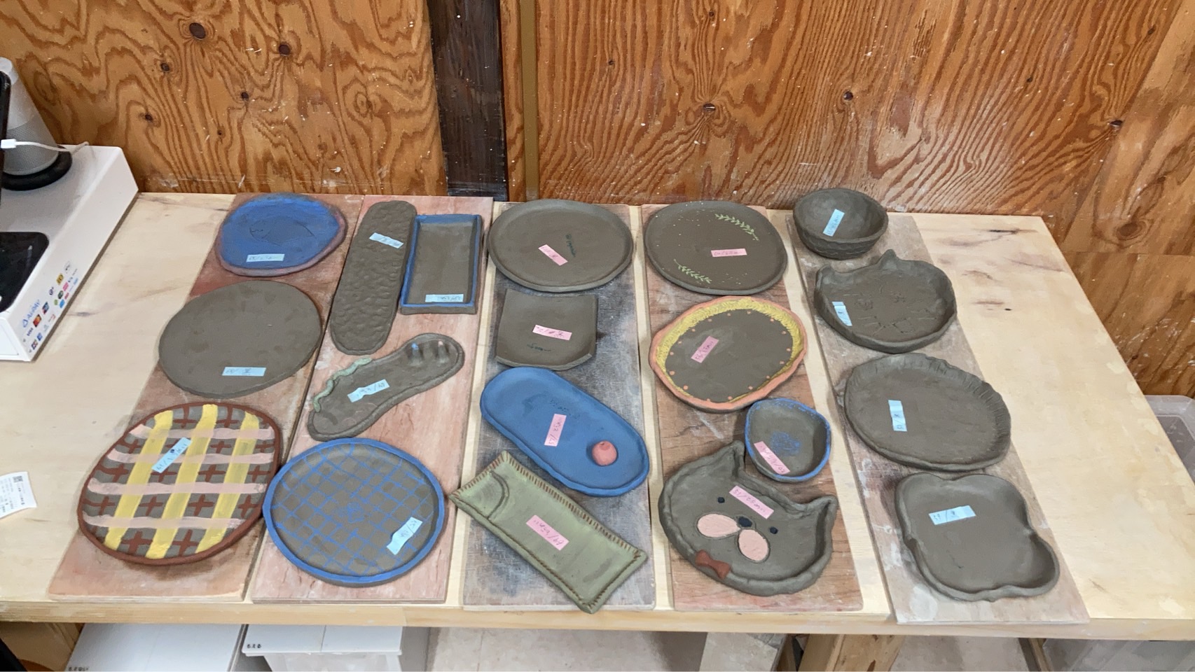 こちらは教室に持ち帰ってきて乾燥待ちのお皿です。